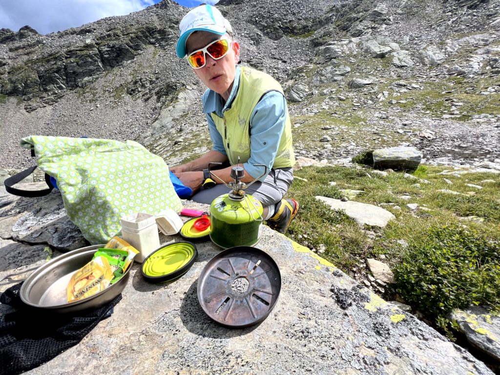 Hübscher Aufstieg über den Pass di Passit und zwei Gratübergänge zur Biwak-Ebene des Pian Grand. Glücklicherweise war in den Biwak-Hüttli kein Platz, so konnten wir dem Dichtestress darin entgehen und an frischer Luft nächtigen. Bei dem Prachtswetter ein Genuss. Der kurz vor der Ebene rumlümmelnde Lärchen-Ast war ein willkommenes Bringis, um mich mit einer One-Stick Challenge zu beschäftigen.
