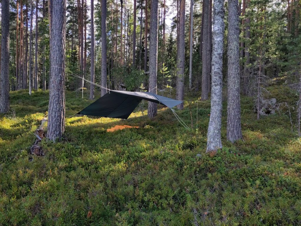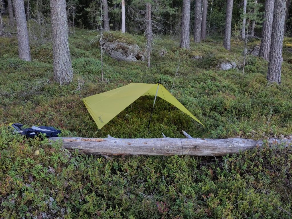 Ich machte mich am Nachmittag mit meinen Tarps gemütlich auf, um etwas weiter weg ein paar Setups auszuprobieren (wozu ich zuerst das Feld von den vielen Heidelbeeren bereinigen musste, damit nachher nicht ganz alles blau war…).