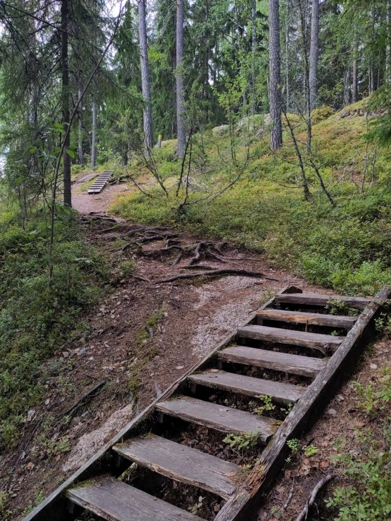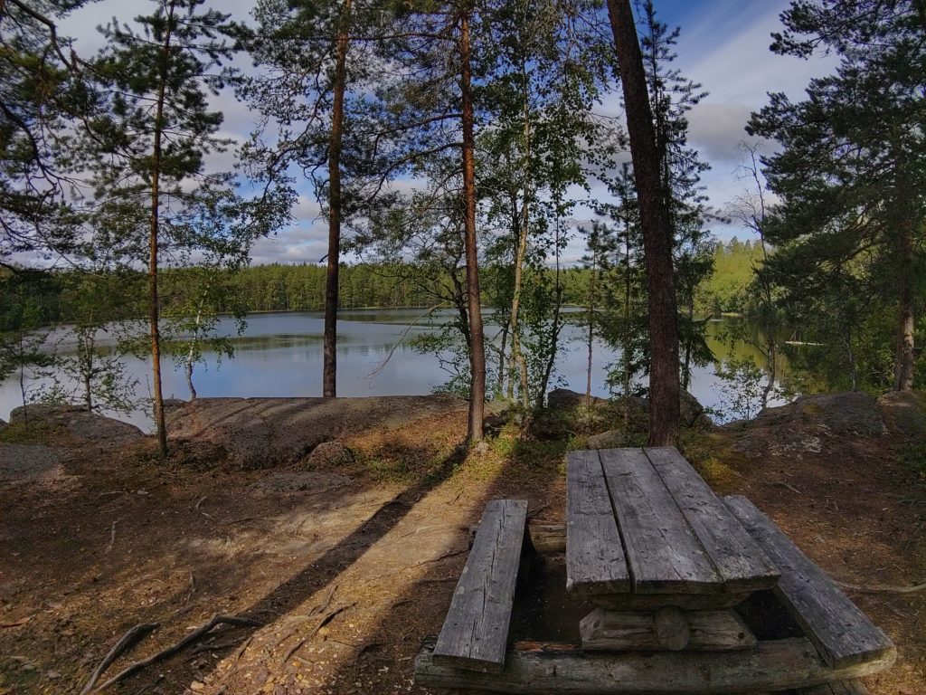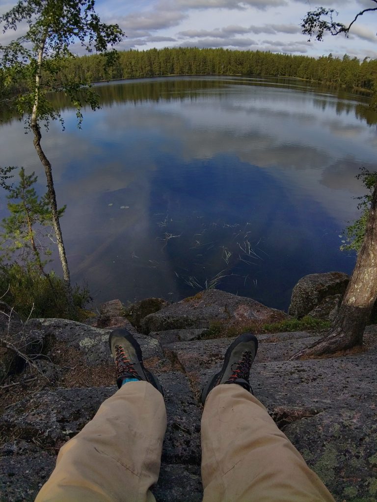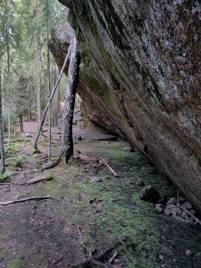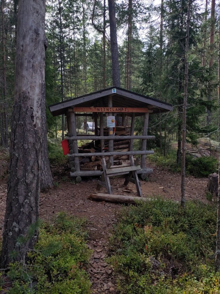 Vor dem Einkaufen machte ich noch einen Abstecher zum Niinilampi, weil es von da zu einer Sehenswürdigkeit ging. Den Platz hätte ich mal vom Anfang an nehmen sollen, mei war der schön! Und einsam! Bin nach dem Einkaufen gleich nochmal hin, um hier nochmal zu schlafen, hab den ganzen Nami allein abgehängt, in Ruhe die nächsten Tage geplant, in der Hängematte gechillt, geduscht und Vögel geschaut und gehorcht. So hab ich mir das vorgestellt!