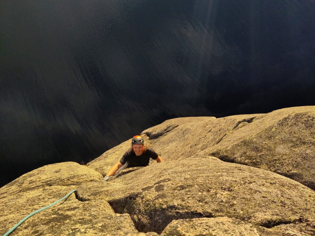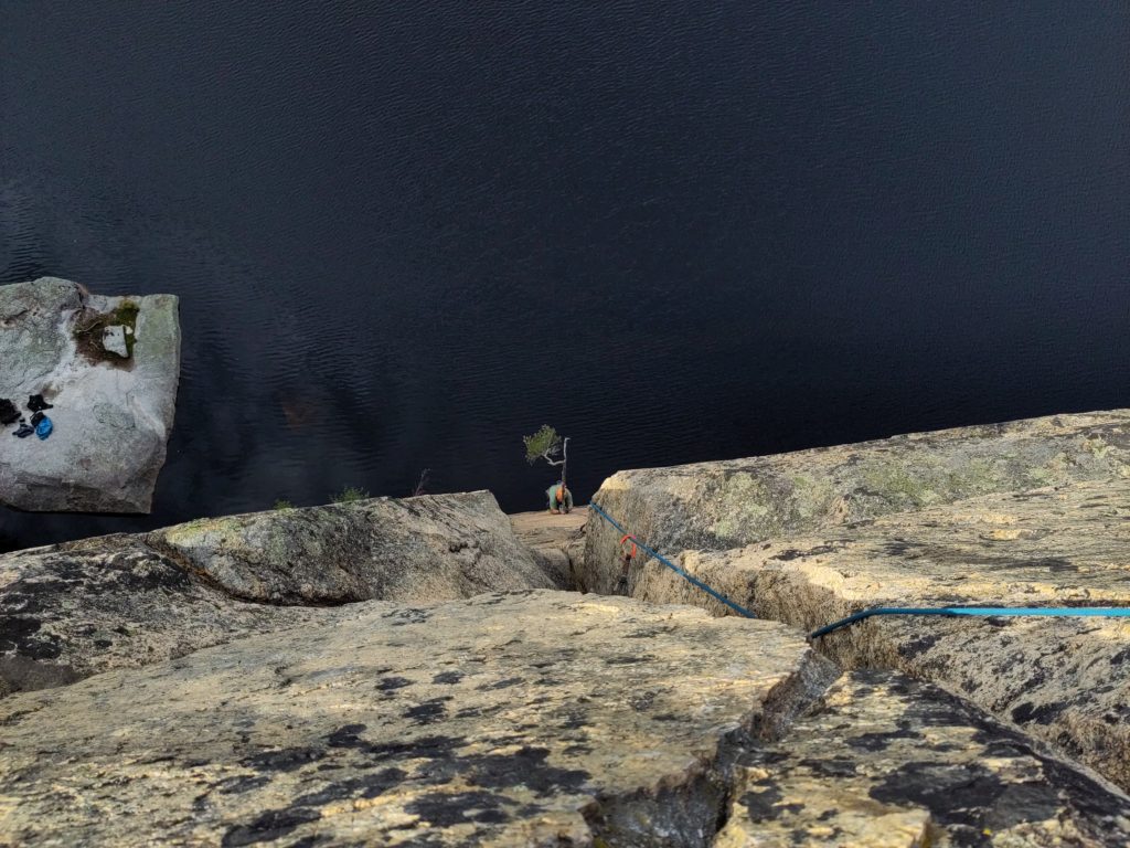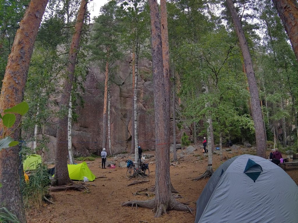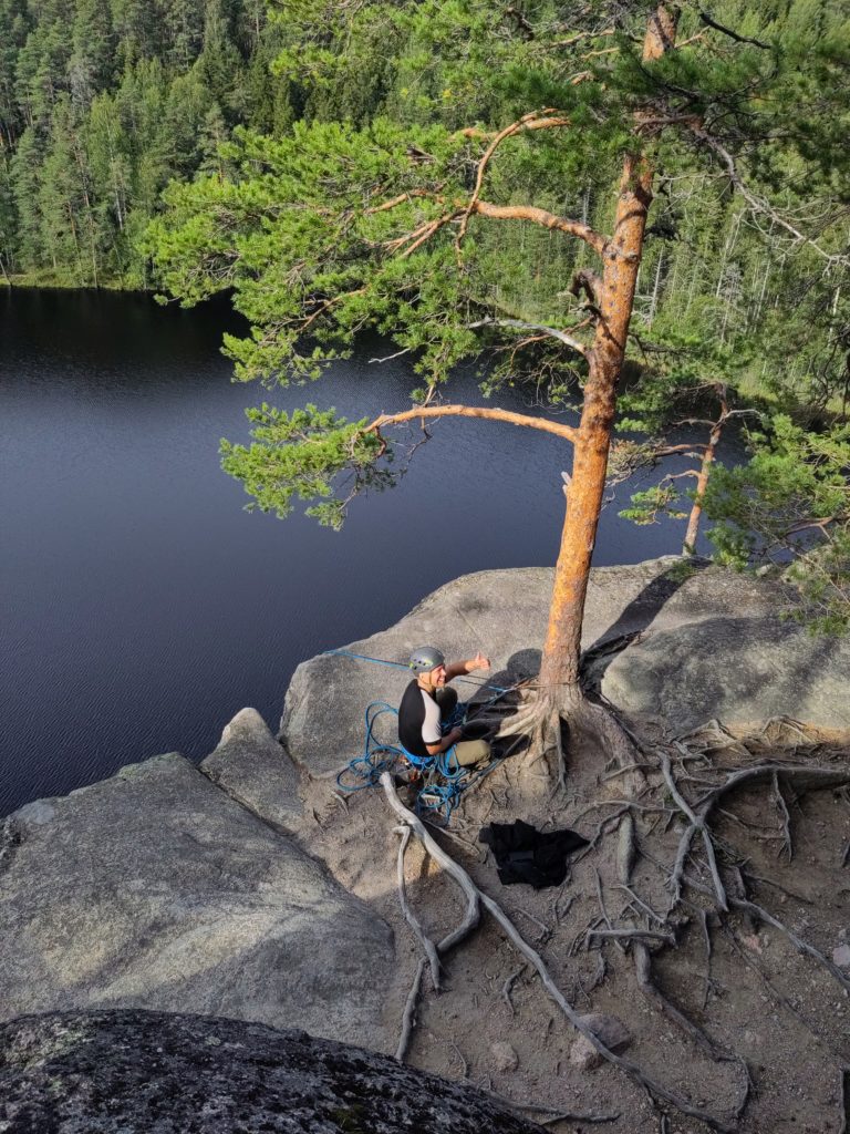 Abends am Feuer dann, tauten all die stummen Finn’innen ziemlich auf, und es wurde munter quer über alle Seilschaften und Nichtkletternde diskutiert, meist auf Finnisch, was mich aber so gar nicht störte. Roope hingegen radelte zurück zu seinem Wohmo für dich Nacht und kam am nächsten Morgen gegen elf wieder.