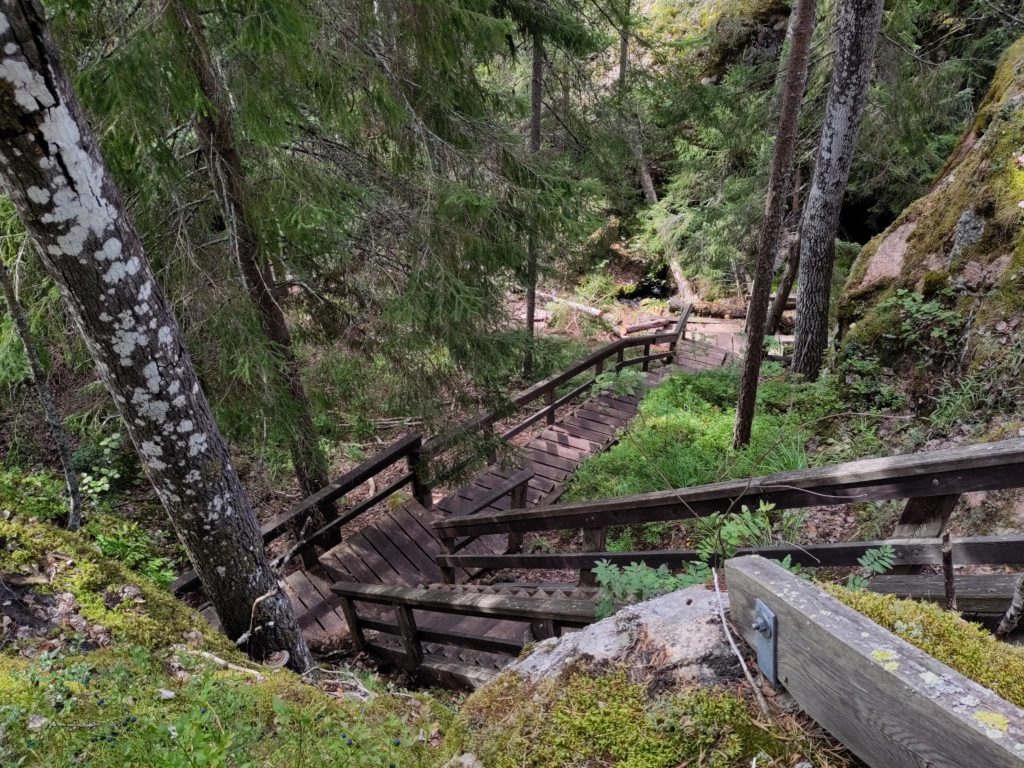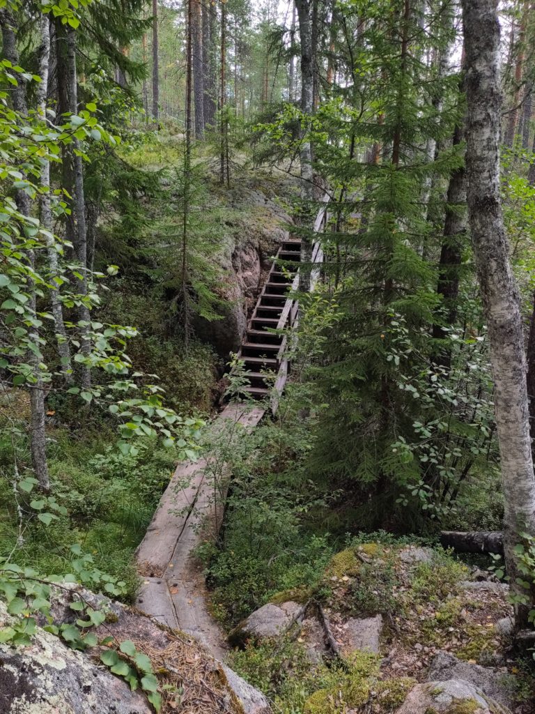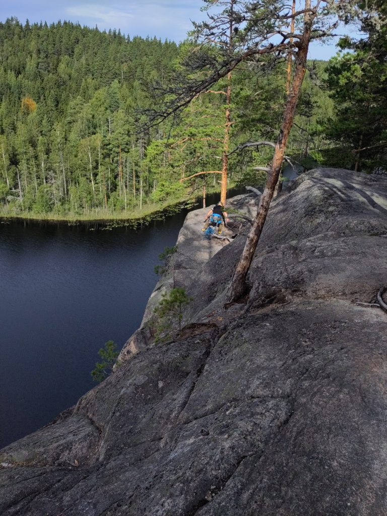 Am Morgen brachen dann die zwei verbleibenden Finnen noch zu einem letzten Kletter-Abenteuer auf, und ich machte mich via Olhavanvuori, wo ich Heinno nochmal begegnete, auf den länglichen Weg zurück via Kirnukangas wo ich endlich mal à poil baden konnte – weil ALLEIN! – und Lojukoski zurück zum Parkplatz in Tervajärvi.