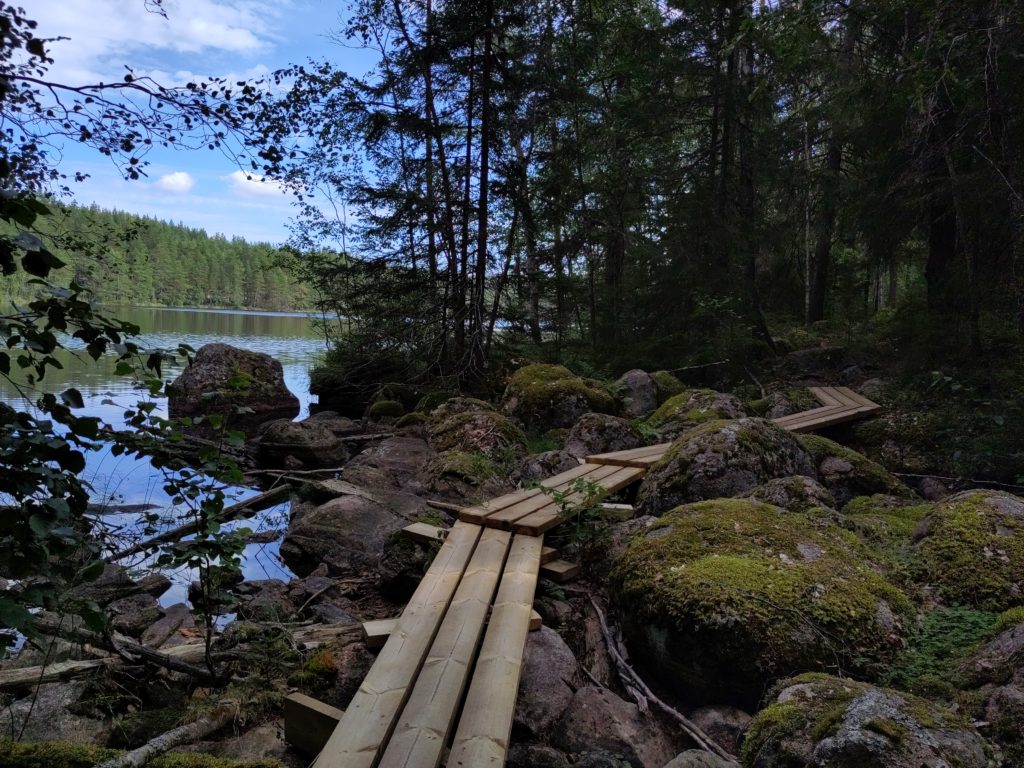 Mein Akkuproblem konnte Sammy beheben; ich durfte seine Powerbank anzapfen und konnte so noch eine zusätzliche Nacht bleiben, und so einen hoffentlich einsameren Montag mit meinem Heimweg zum Parkplatz verbringen. Da so die Unterwäsche reichlich Zeit zum Trocknen hatte, konnte ich auch noch ein Bad im Olhavalampi geniessen, der angenehm erfrischend kühl, aber nicht kalt war.