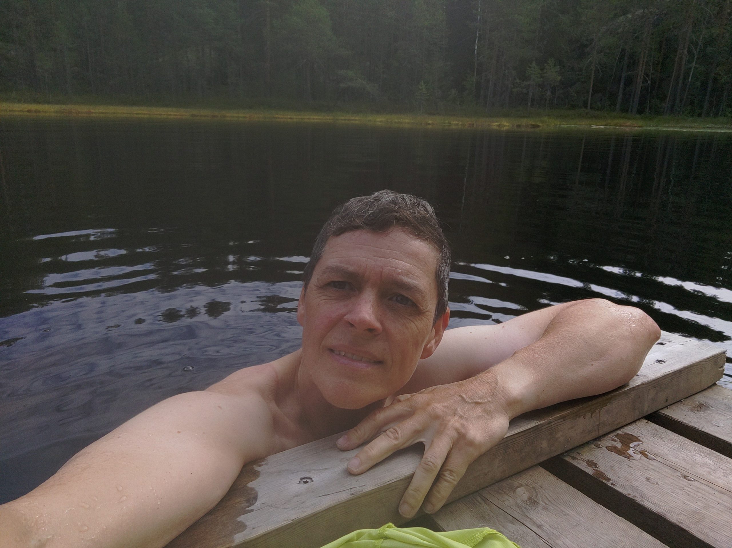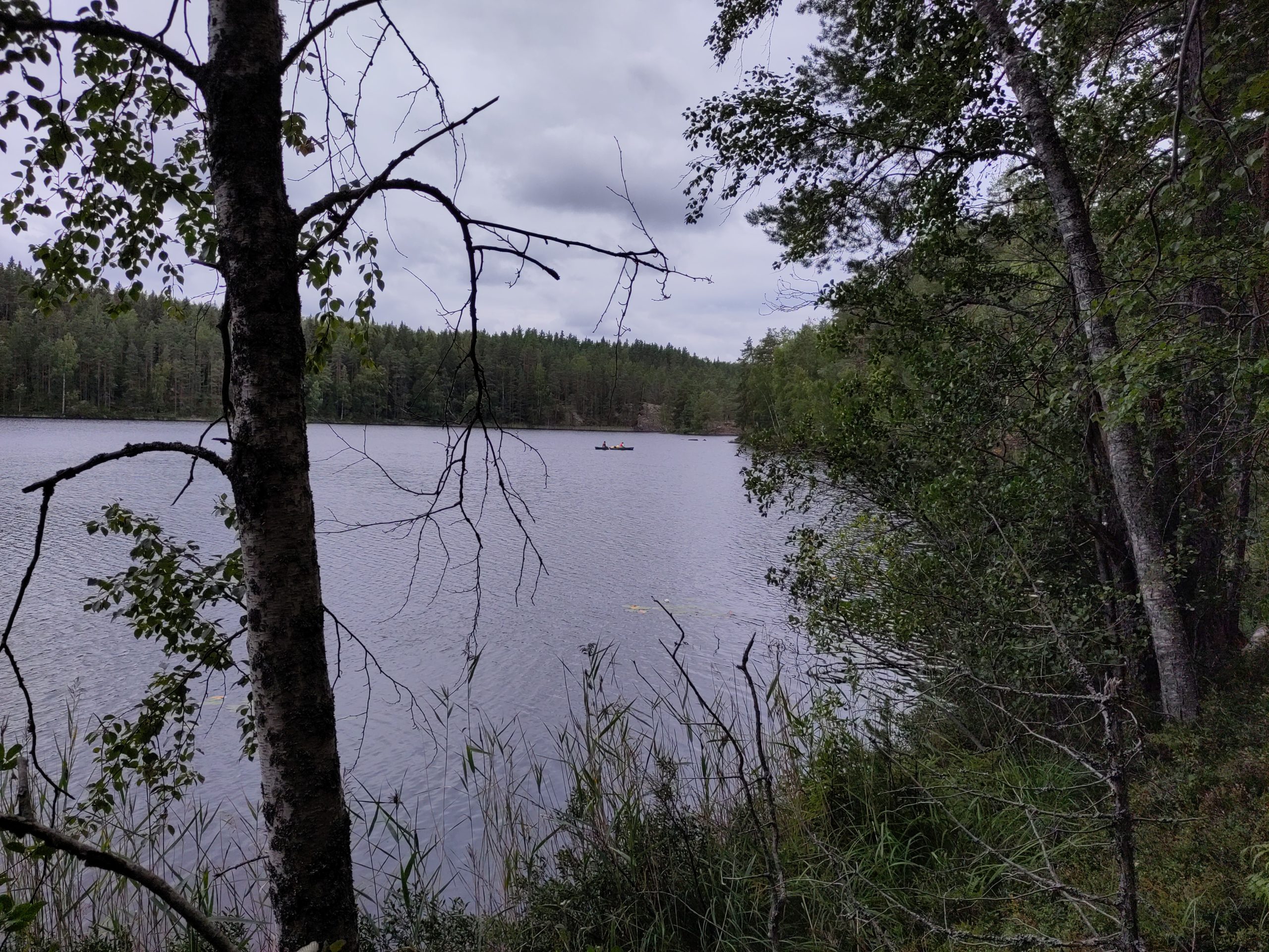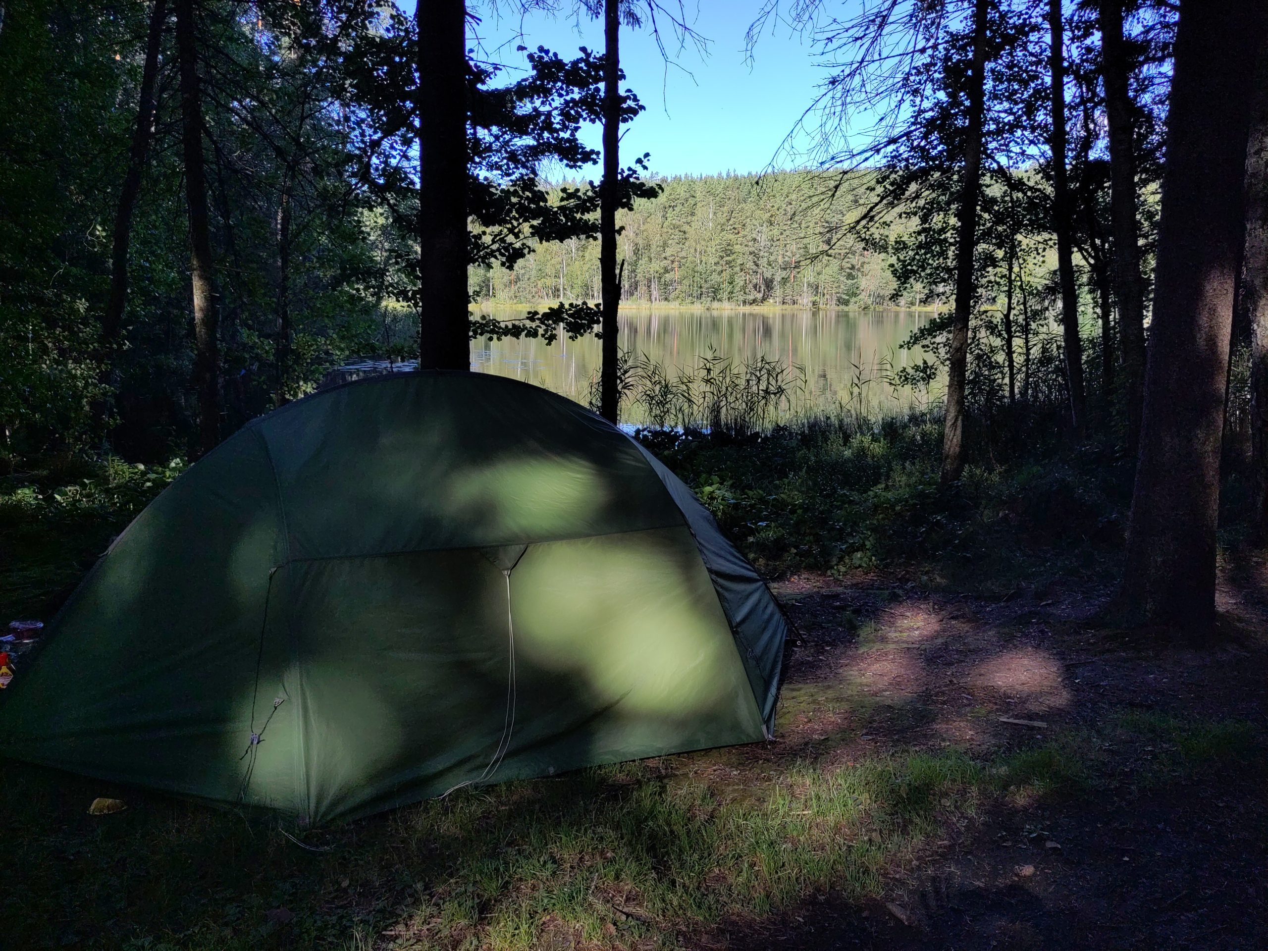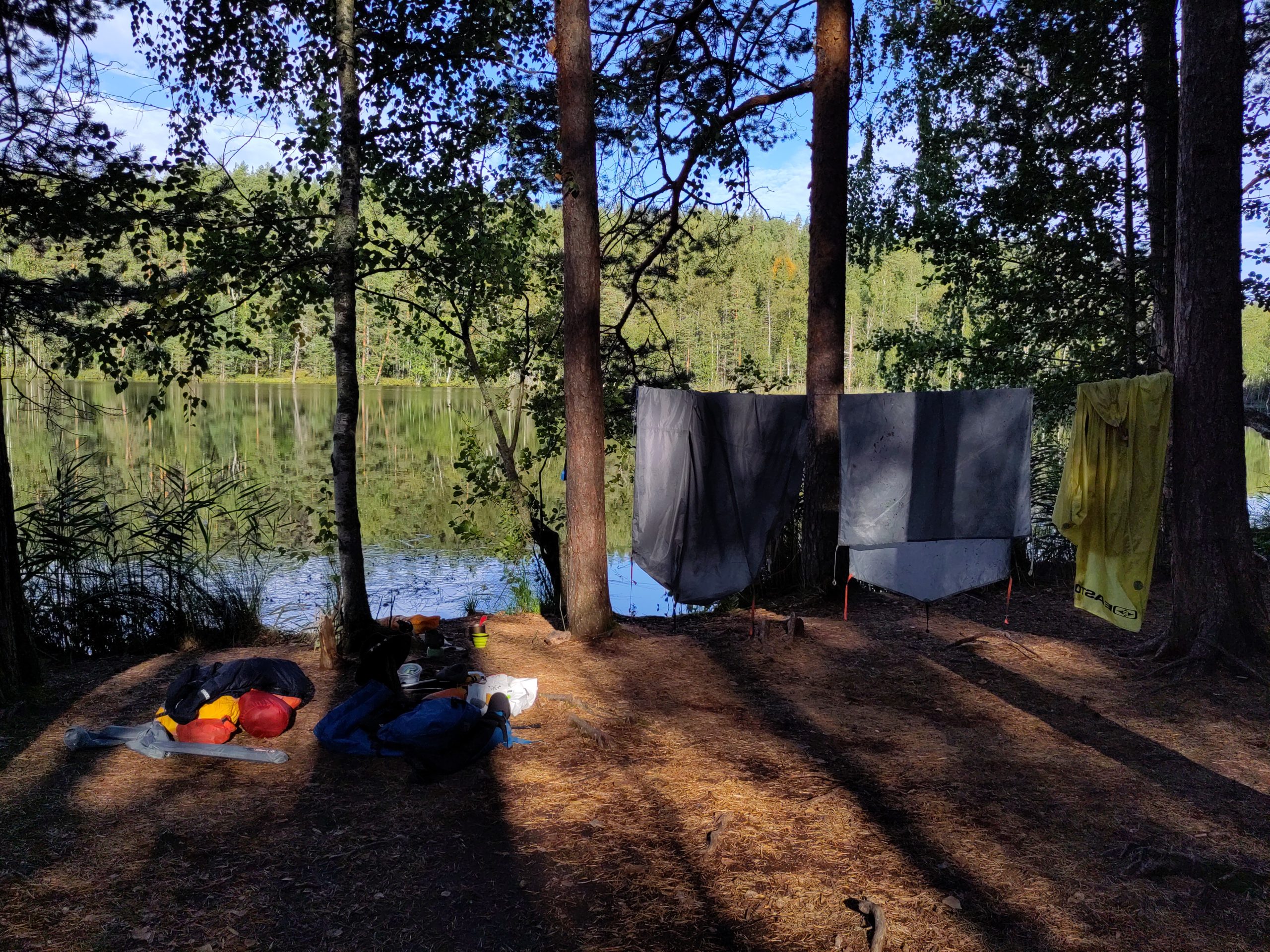 Mein Akkuproblem konnte Sammy beheben; ich durfte seine Powerbank anzapfen und konnte so noch eine zusätzliche Nacht bleiben, und so einen hoffentlich einsameren Montag mit meinem Heimweg zum Parkplatz verbringen. Da so die Unterwäsche reichlich Zeit zum Trocknen hatte, konnte ich auch noch ein Bad im Olhavalampi geniessen, der angenehm erfrischend kühl, aber nicht kalt war.