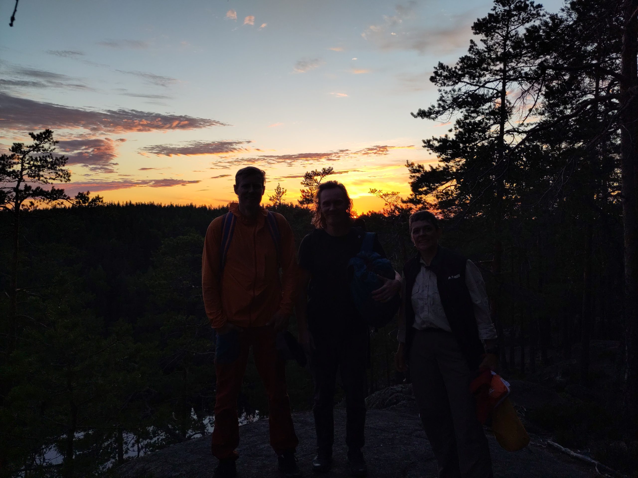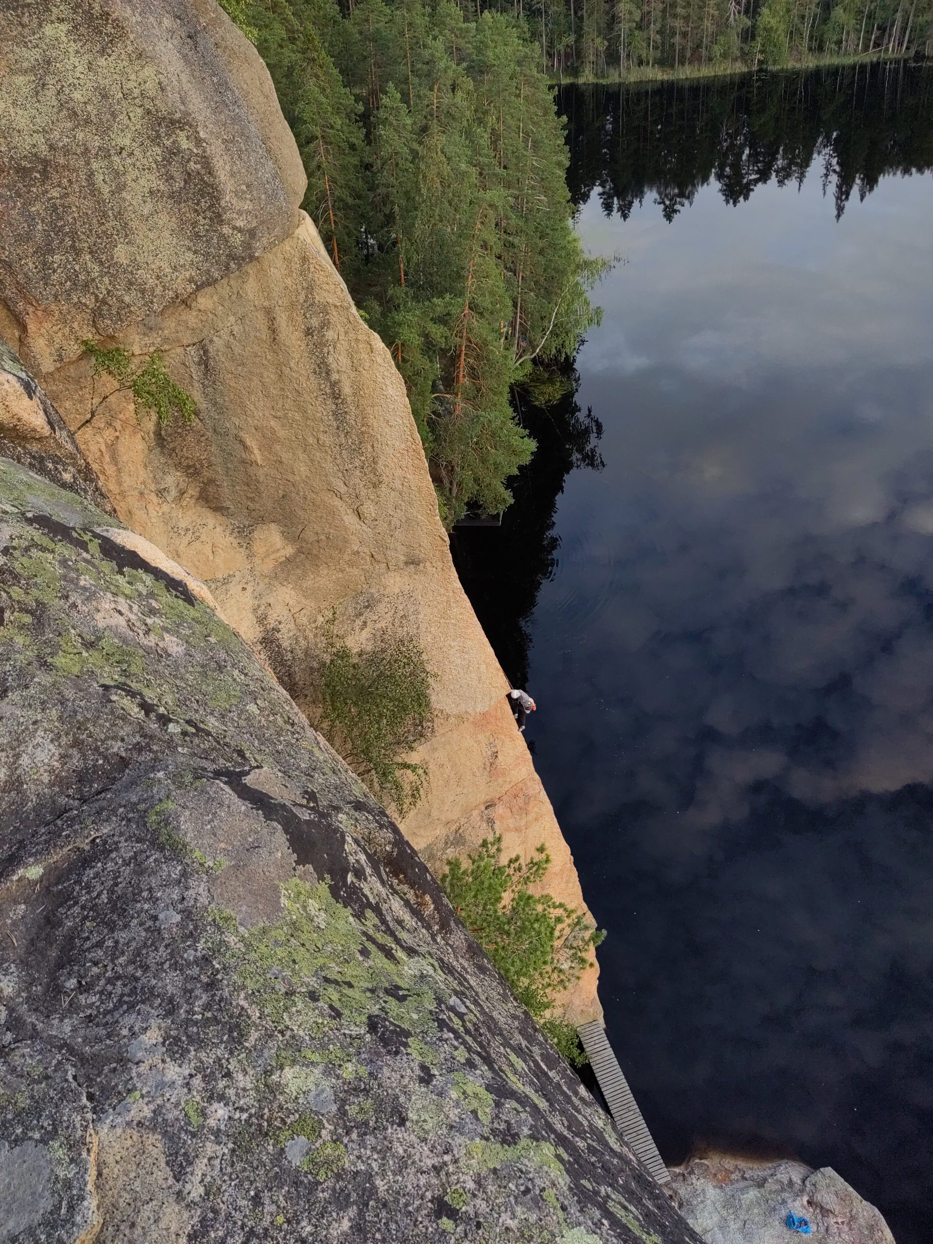 Abends am Feuer dann, tauten all die stummen Finn’innen ziemlich auf, und es wurde munter quer über alle Seilschaften und Nichtkletternde diskutiert, meist auf Finnisch, was mich aber so gar nicht störte. Roope hingegen radelte zurück zu seinem Wohmo für dich Nacht und kam am nächsten Morgen gegen elf wieder.