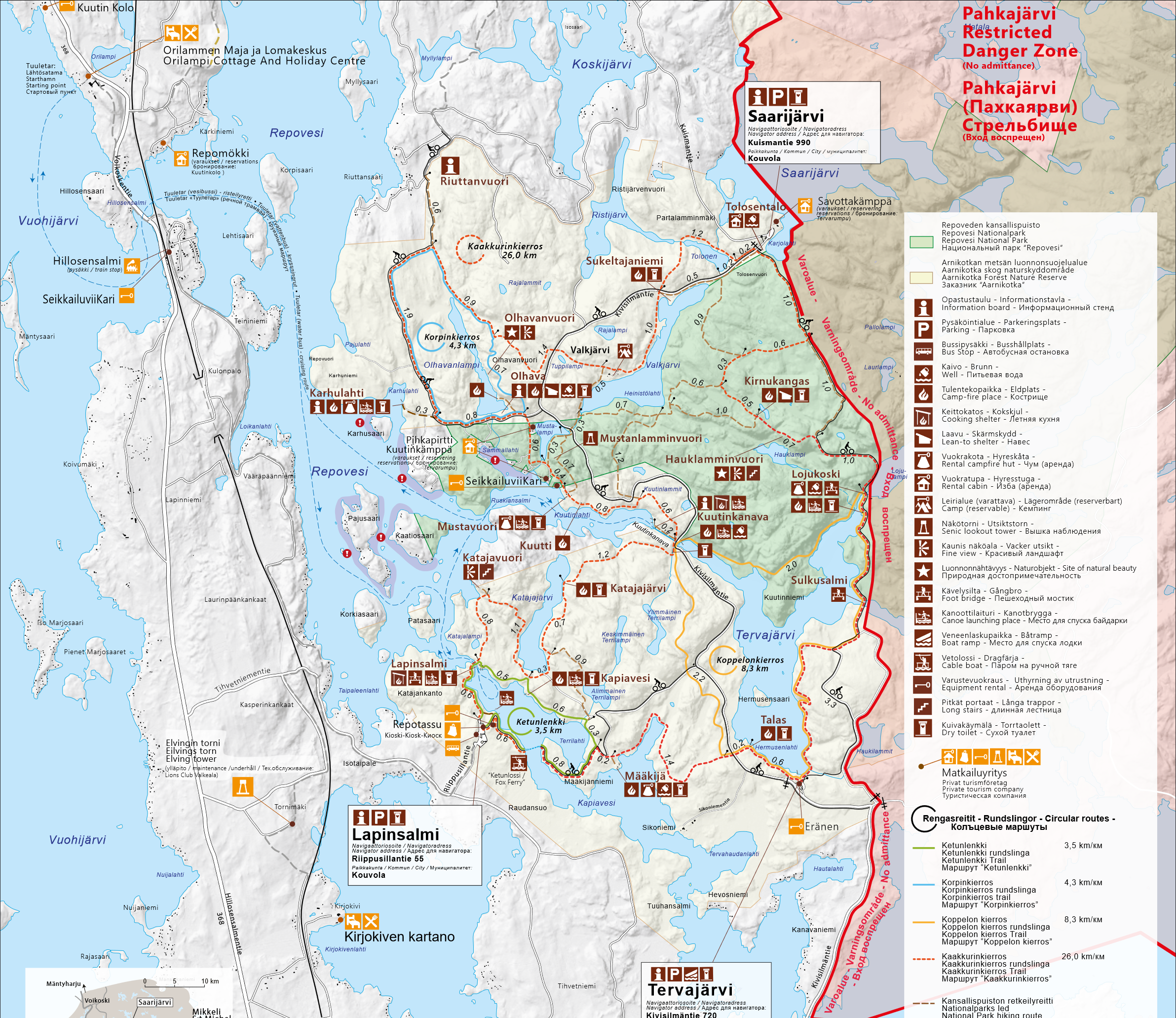 Da dachte ich ja, ich hätte bisher immer so viele Menschen um mich herum gehabt; da war ich aber noch nicht im Repovesi Nationalpark richtig angekommen … Aber der Reihe nach. Zuerst versuchte ich aber, auf dem Weg dahin in Hillosensalmi so einen Self-Rental-Posten für Kanus und Kajaks zu benutzen. Gar nicht so einfach, wenn alles nur auf Finnisch angeschrieben ist. Das Mobilnetz ist aber auch da zuverlässig und rettet mich: Bilder der angeschlagenen Texten mit Online-OCR-Tools zu Text machen, diese dann an Deepl schicken und sie in meinenen Notizen ablegen.