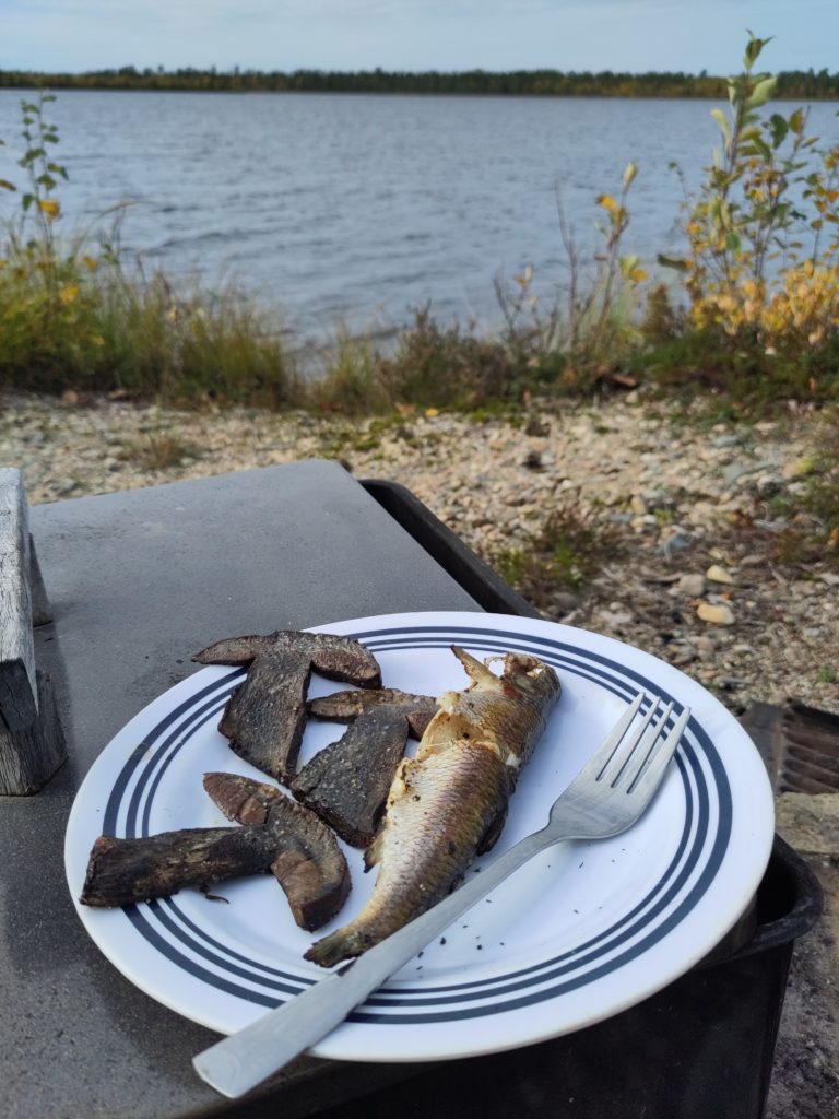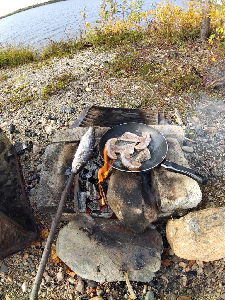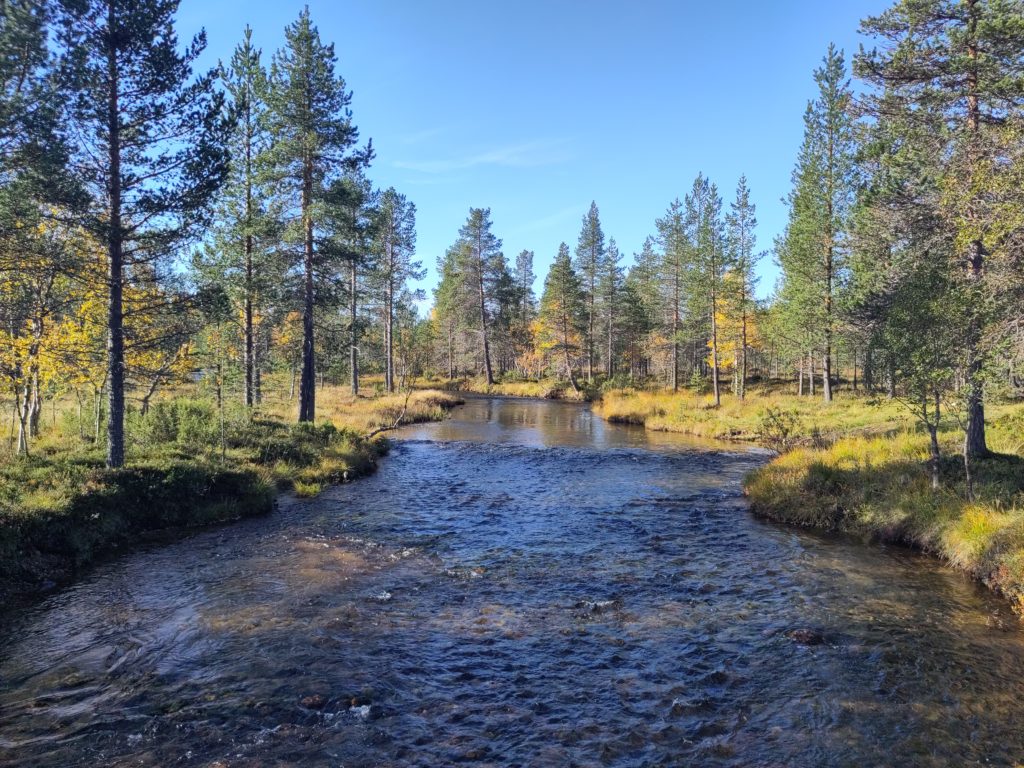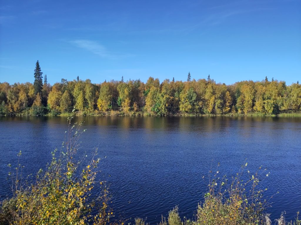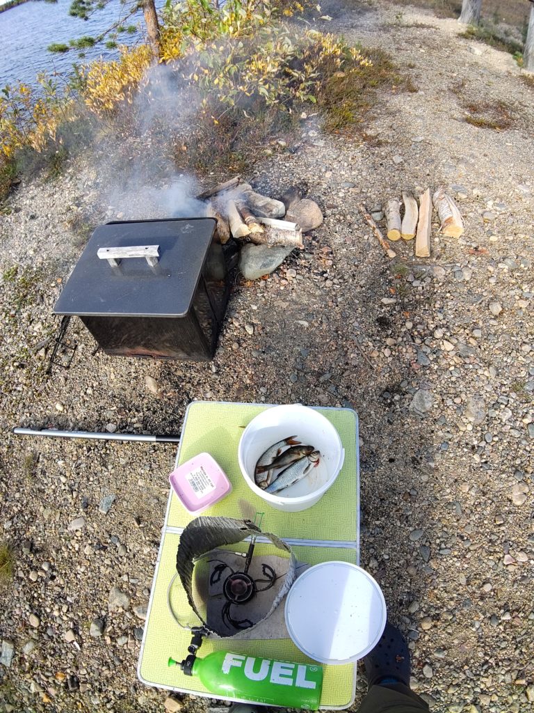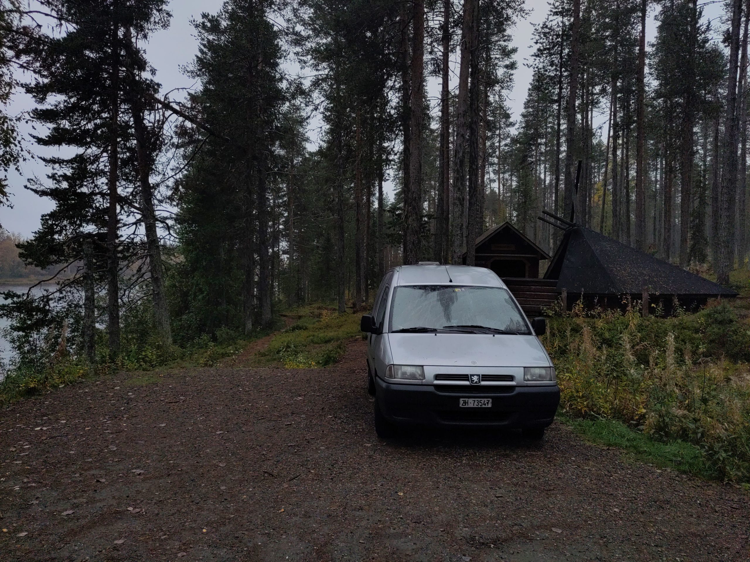 Zmittag im Kasten, lecker vom Feuer, nur das Duschwasser mochte nicht ganz so warm werden, wie gewünscht, aber warm genug, um sauber zu werden, war es dann schon. Ja und dann zuckelte ich gemütlich die restlichen 70 km bis zum Shelter, die werdende Ruska bestaunend, die aber hier deutlich unter der finnischen Monokultur-Waldwirtschaft leidet. Das flashige Rot taucht nur sehr selten auf (oder ich bin noch zu früh) und wenn, dann kann ich da grad garantiert nicht anhalten. Jetzt müsste gewandert werden, doch dafür habe ich keine Zeit mehr. Auf mich wartet das letzte Lagerfeuer in Finnland, wie die Zeit vergeht …