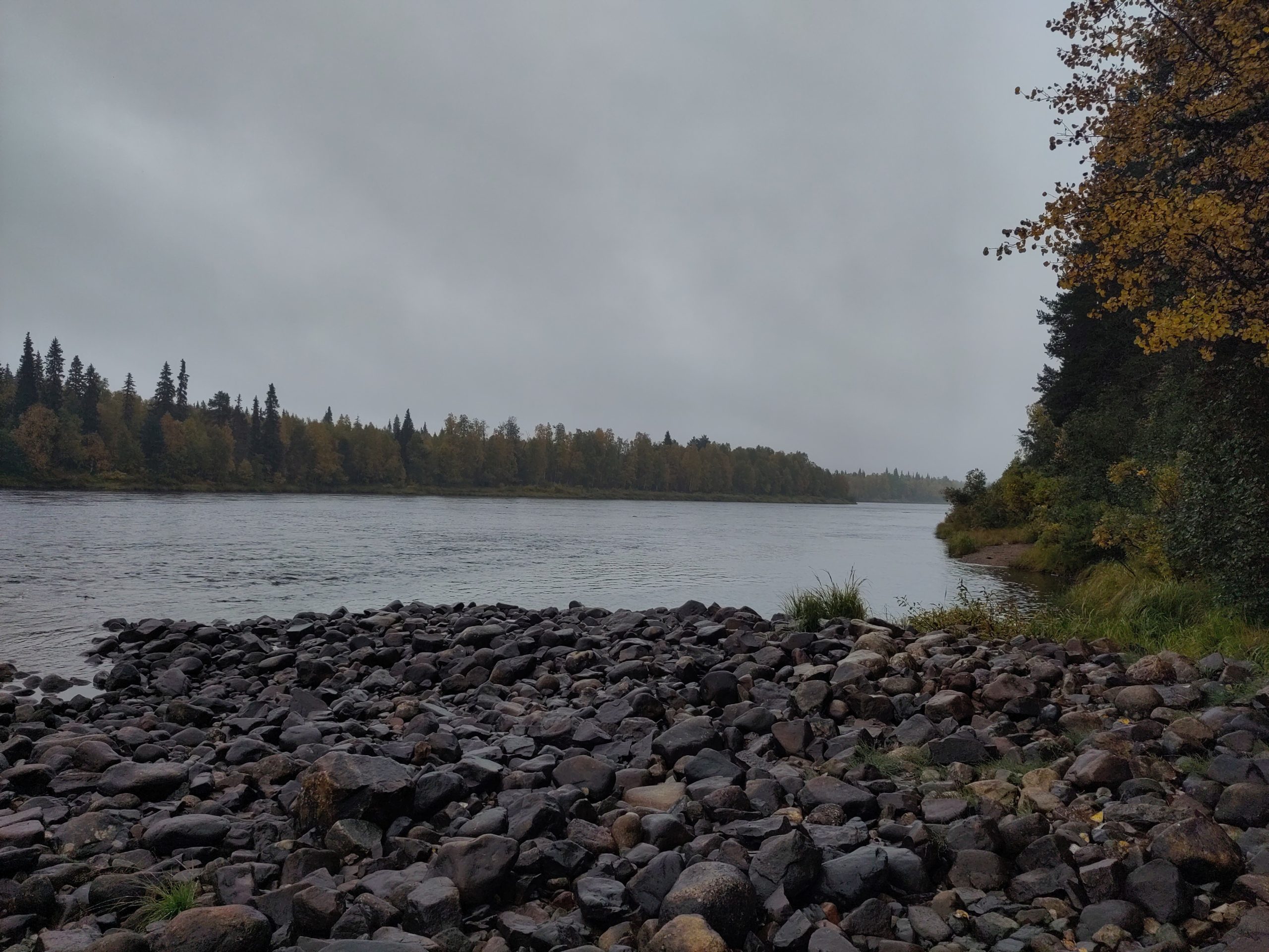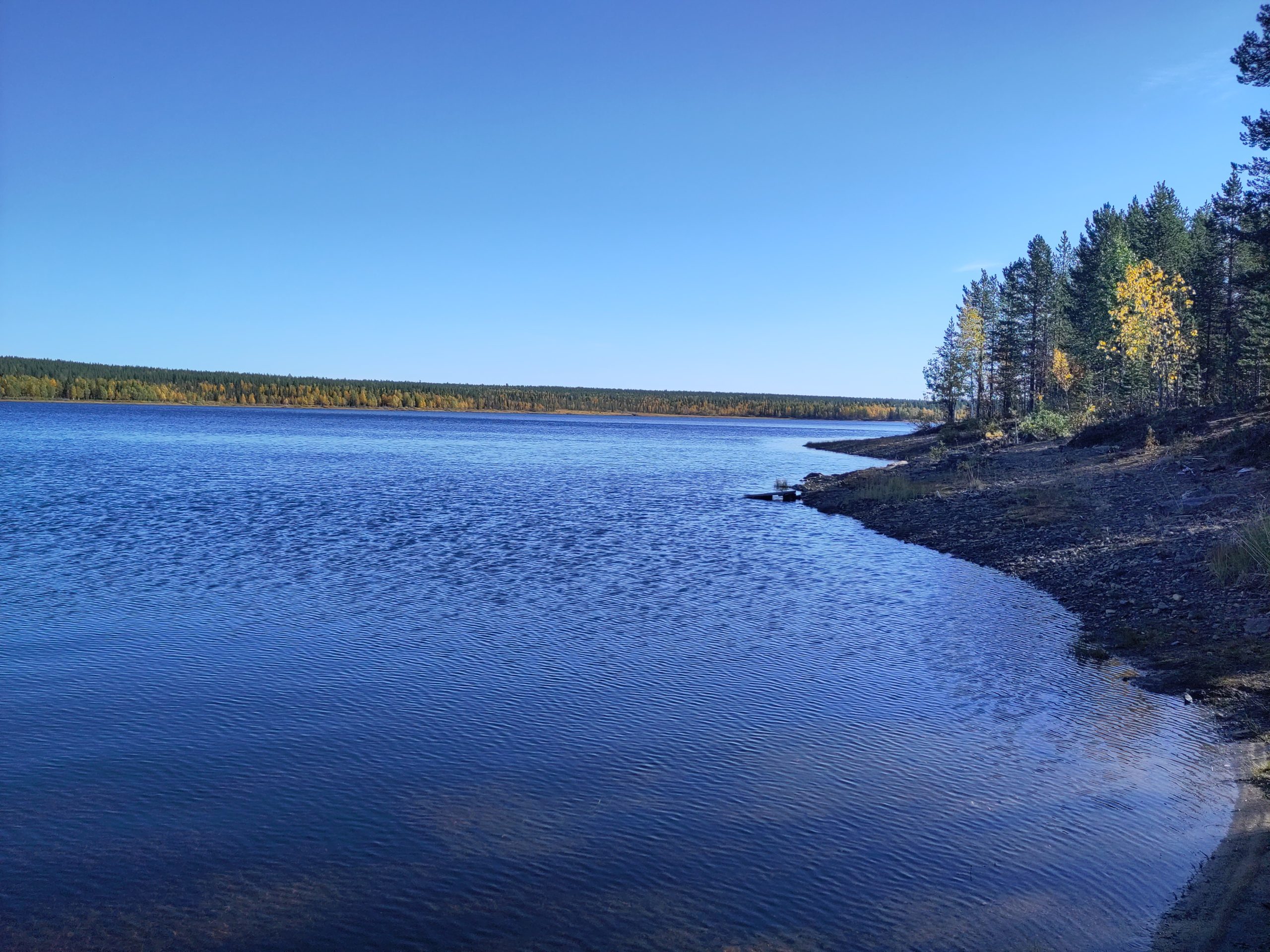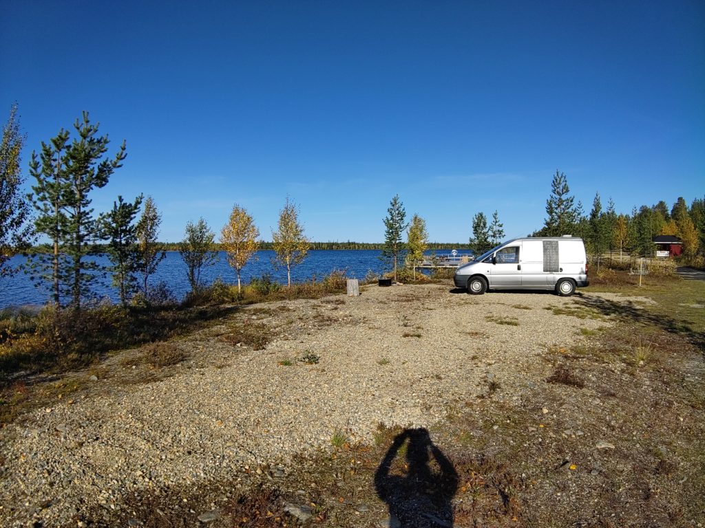 Nun lag Kittilä ja an meinem Weg zurück nach Inari, und von da waren es bloss 14 km zu dem Platz. Irgendwo musste ich ja nochmal schlafen, also wieso nicht da, wo es so viele Beeren hatte und sonst keine Leute. Aber ich greife vor. Zuerst musste ich ja vom Inarijärvi nach Sodankylä und dort einen Haken nach Westen schlagen (die direkte Route über Pokka hatte ich verworfen, weil mir Christian in Hetta gesagt hatte, ab Pokka bis Kittilä wären es 70 km übelste Schlaglochpiste gewesen). Ausserdem wollte ich auch gerne nochmal Angeln, und eine Dusche wäre längst mal wieder überfällig. Also doch Camping und Sauna? Mööö, keine Lust, aber auf OSMand fand ich eine Schutzhütte mit Badestrand an einem See, die wollte ich mal auschecken.