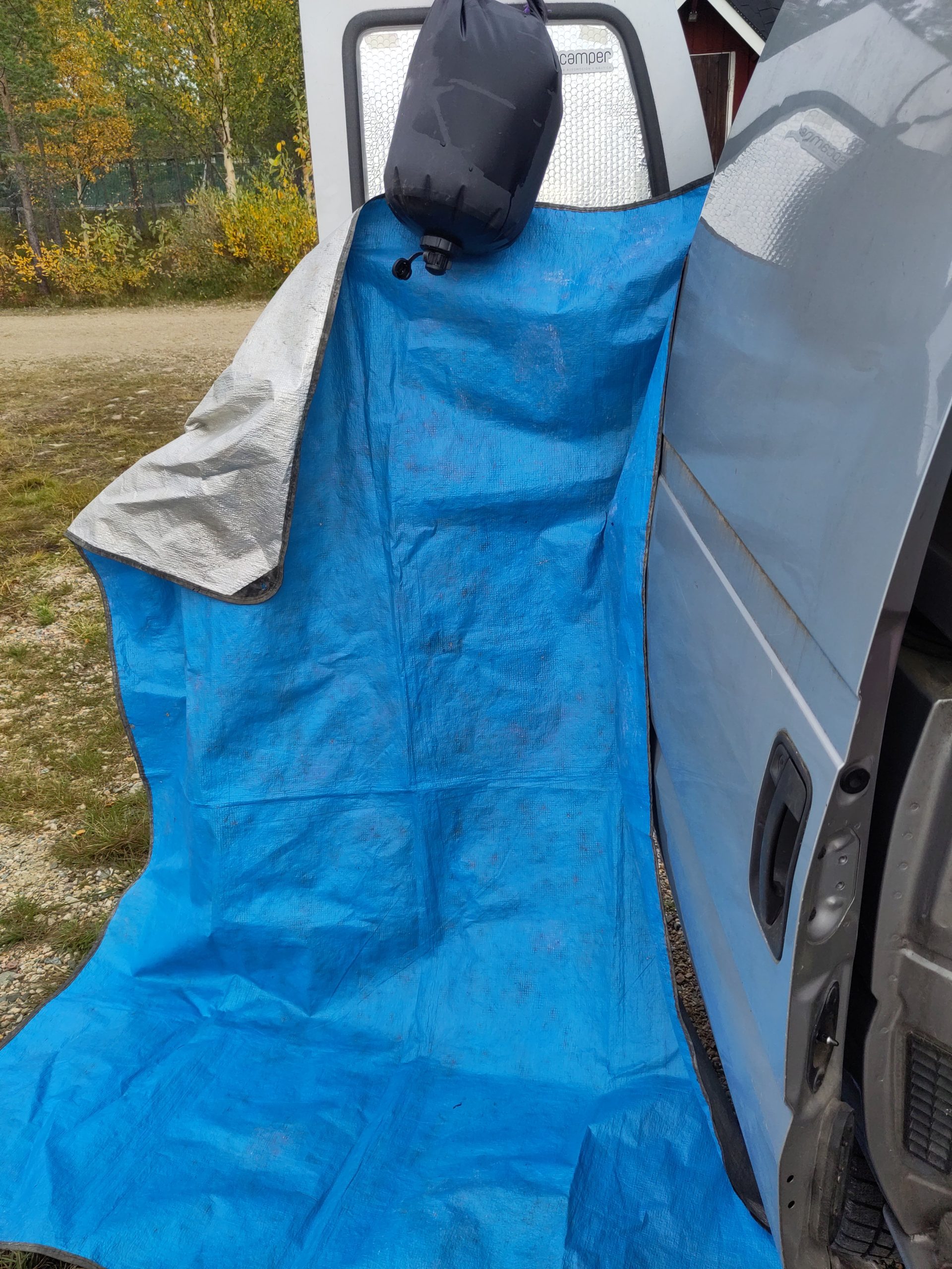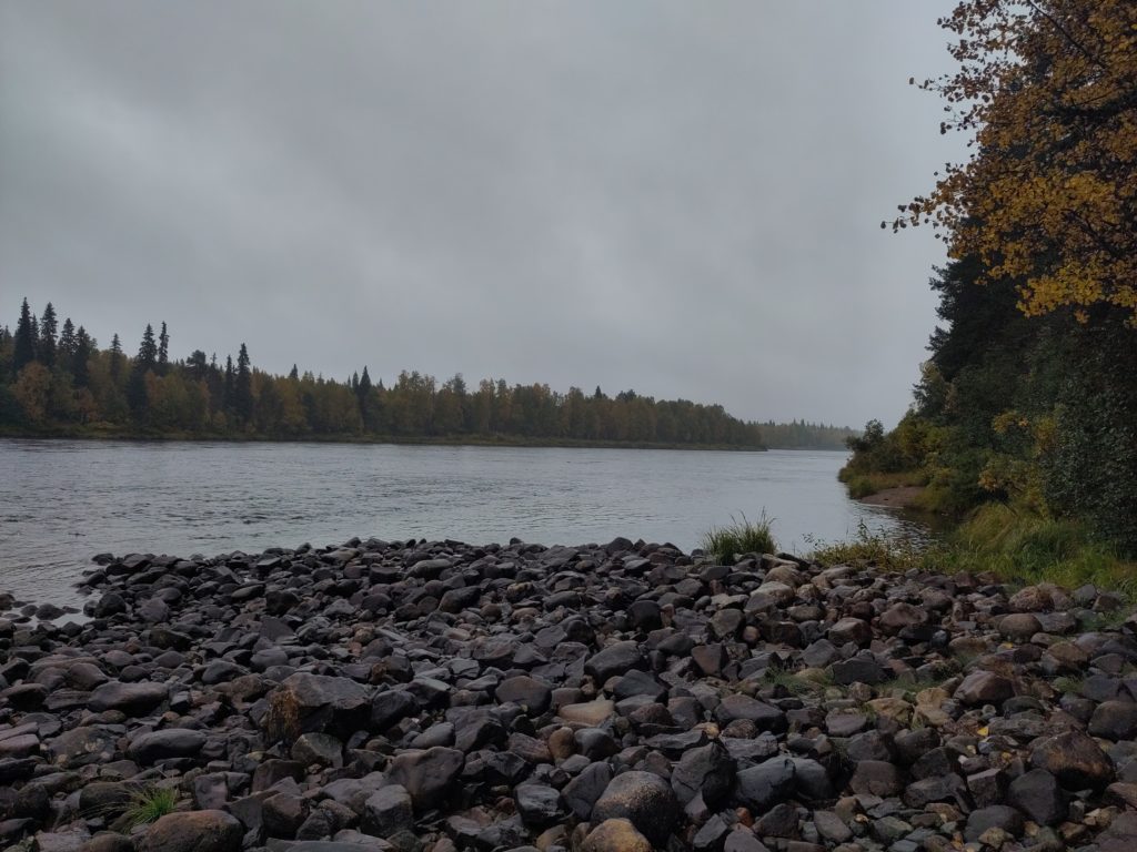 Nach dem Nordkapp fehlte mir ja plötzlich mein grauer Stuhl, und ich begann etwas an mir zu zweifeln … wie vergesslich werd ich denn noch? Naja, Schwund ist überall, sagte ich mir, und ich habe ja noch die Drei-Bein-Hocker, ohne Lehne halt. Und wenn ich unbedingt wollen würde, ist ja auch das neue Sofa mit dabei, aber das war mir immer zu umständlich zum aus- und einladen so, wie ich es für diese Reise verstaut hatte. Item. Irgendwann kam ich zum Schluss, dass der letzte Ort, wo ich den Stuhl benutzt hatte, bei meiner Übernachtung am Ounasjoki war, wo ich ja dann letztlich im Lean-to-Shelter gekocht hatte mit dem Feuer im Rücken, weil es so frisch war.