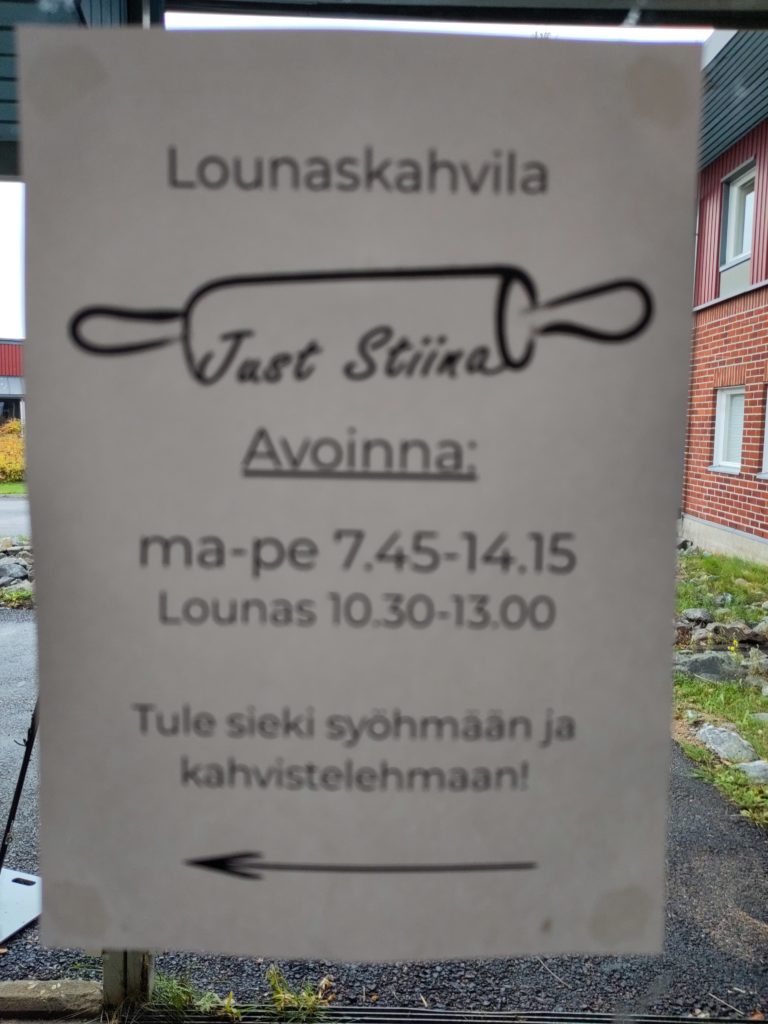 Kolari entpuppt sich als ziemliches Nest, aber beim Gemeindehaus gibt‘s ein Lounaskahvila (ein Zmittags-Kafi, quais) – mit viel Herzblut geführt – und die Bibliothek natürlich. So bleibt mir nur noch, mich in die heute glücklicherweise öffentlich zugängliche Bibliothek zu verziehen, diesen Beitrag zu schreiben und die Zeit bis zum Zug totzukriegen. Gut, hat die Bibliothek geöffnet bis 18 Uhr!