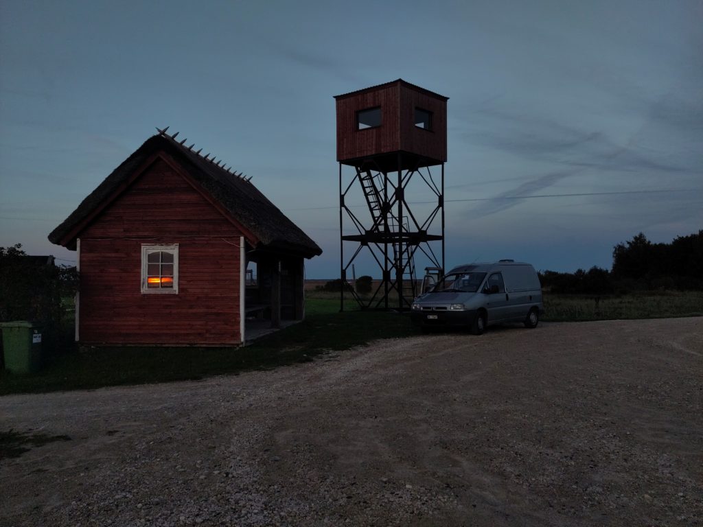Nur muss ich jetzt, anstatt zur Insel weiterzufahren, beim Keemu-Turm übernachten, es könnten ja nochmal Kraniche landen. Ich gehe noch fischen und geniesse da einen längeren spontan-Vortrag einer Kaya, die wohl mal Direktorin der Nationalparks in Lettland war, bevor beschlossen wurde, dass die Behörde auch einfach beim Umwelt-Departement untergebracht werden kann.