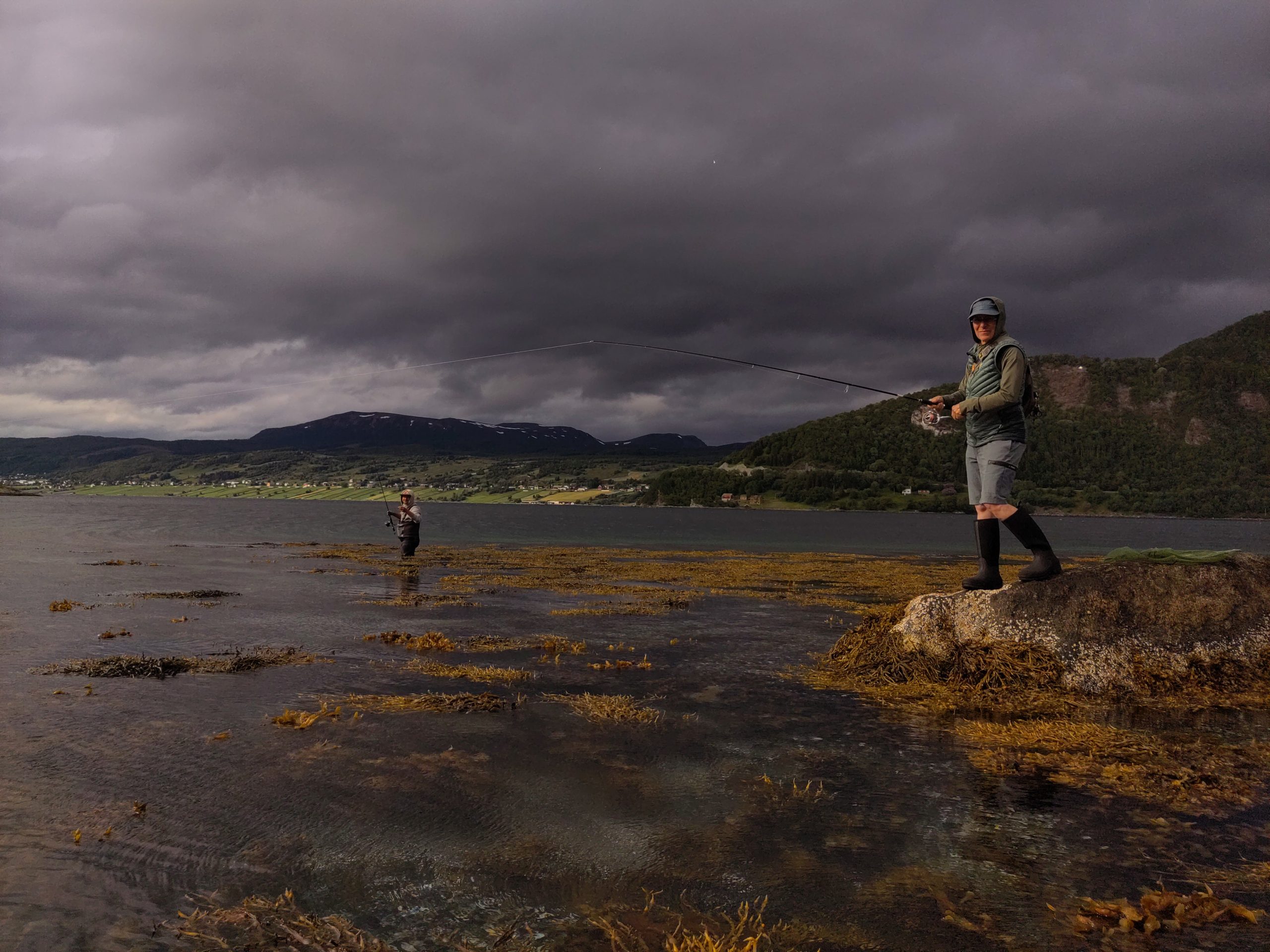 An Straumem fängt man Fische, haben wir gelernt. Also fahren wir, dem ursprünglichen Plan folgend, vom Barduelva weiter bis kurz vor Borkenes. Hier soll ein absoluter Hotspot für Pink Salmon, auch Buckellachs genannt, sein, sagt die App fish brain.