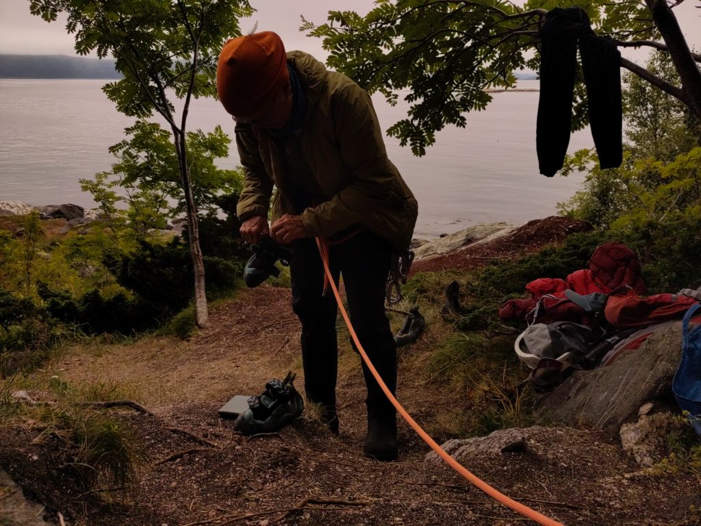 Eile war zum Klettern bei dem Wetter nicht angesagt, also noch gschwind zum Joker in Brensholmen für Leergutentsorgumg und Getränke auffüllen. Die Berner Joker-Angestellte, die uns vor zwei Wochen den guten Tipp gab, zur Fähre zu eilen, wurde mit der zweiten Hälfte unseres Fangs belohnt. Sie hat sich sehr gefreut und wir konnten wieder angeln für frischen Lachs😁