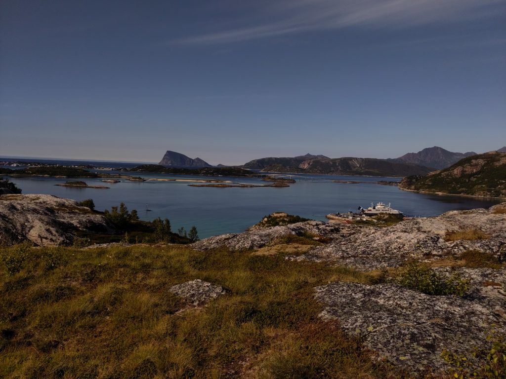 Nach dem Übersetzen nach Brensholmen war es zwar erst halb acht Uhr abends, aber unsere Batterien waren leer und wir brauchten dringend Schlaf; wir fanden eine etwas volle Parkbucht vor der Brücke nach Sommarøy, kochten geschwind den Lachs und Stocki, danach schliefen wir lang bis in den nebligen Morgen.