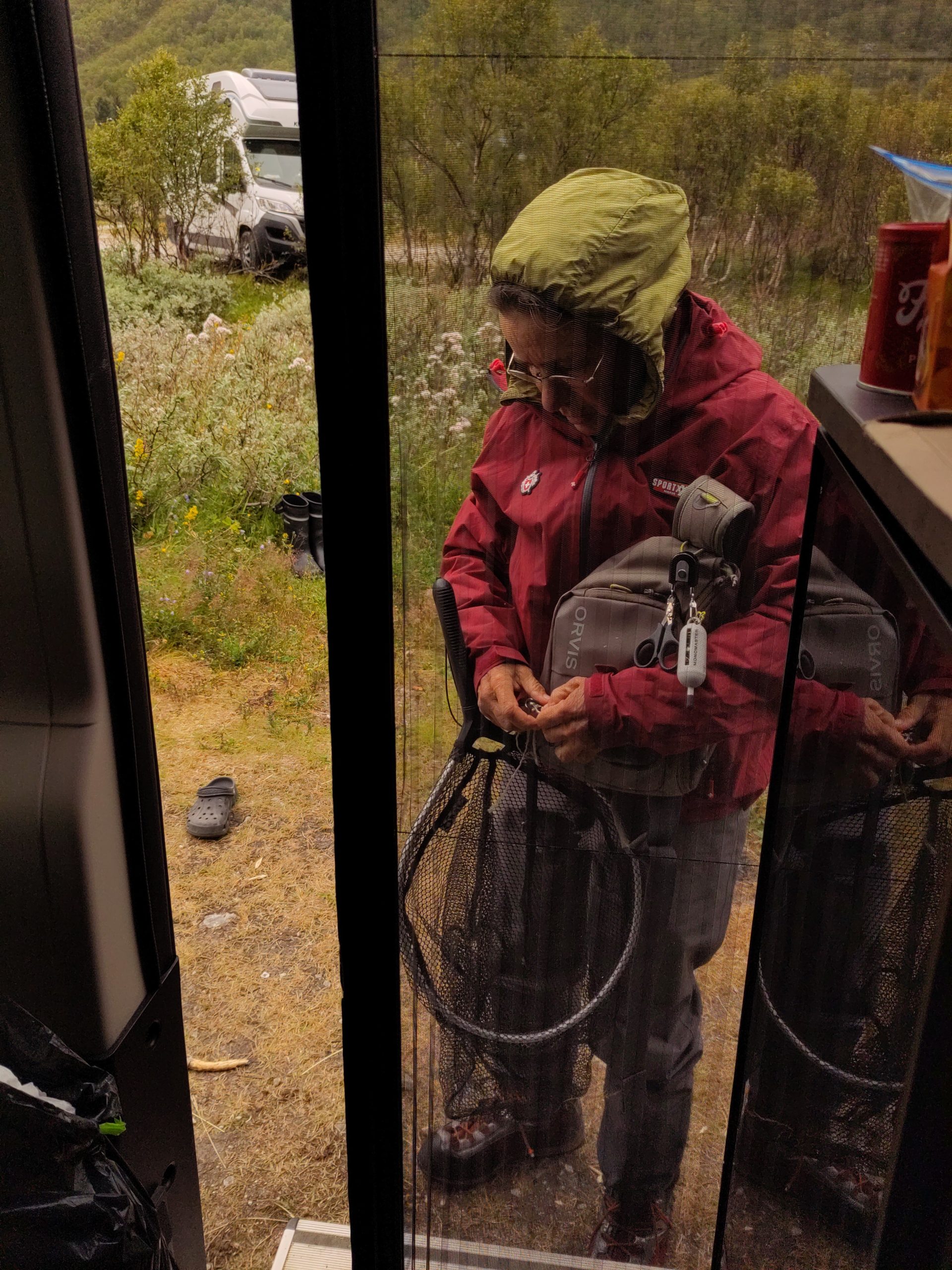 Auch hier waren wir schon, aber erstens müssen wir ja so langsam zurück Richtung Tromsø, zweitens ist der Platz wirklich schön zum Stehen und drittens hat hier Milan seinen Atlantischen Lachs gefangenn