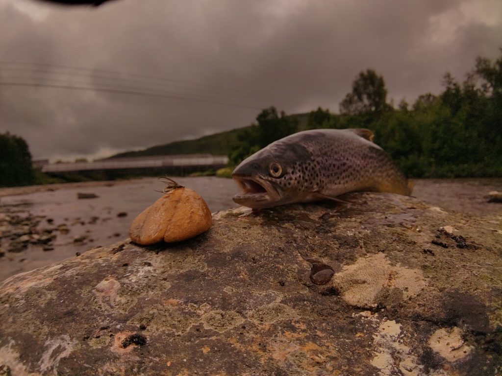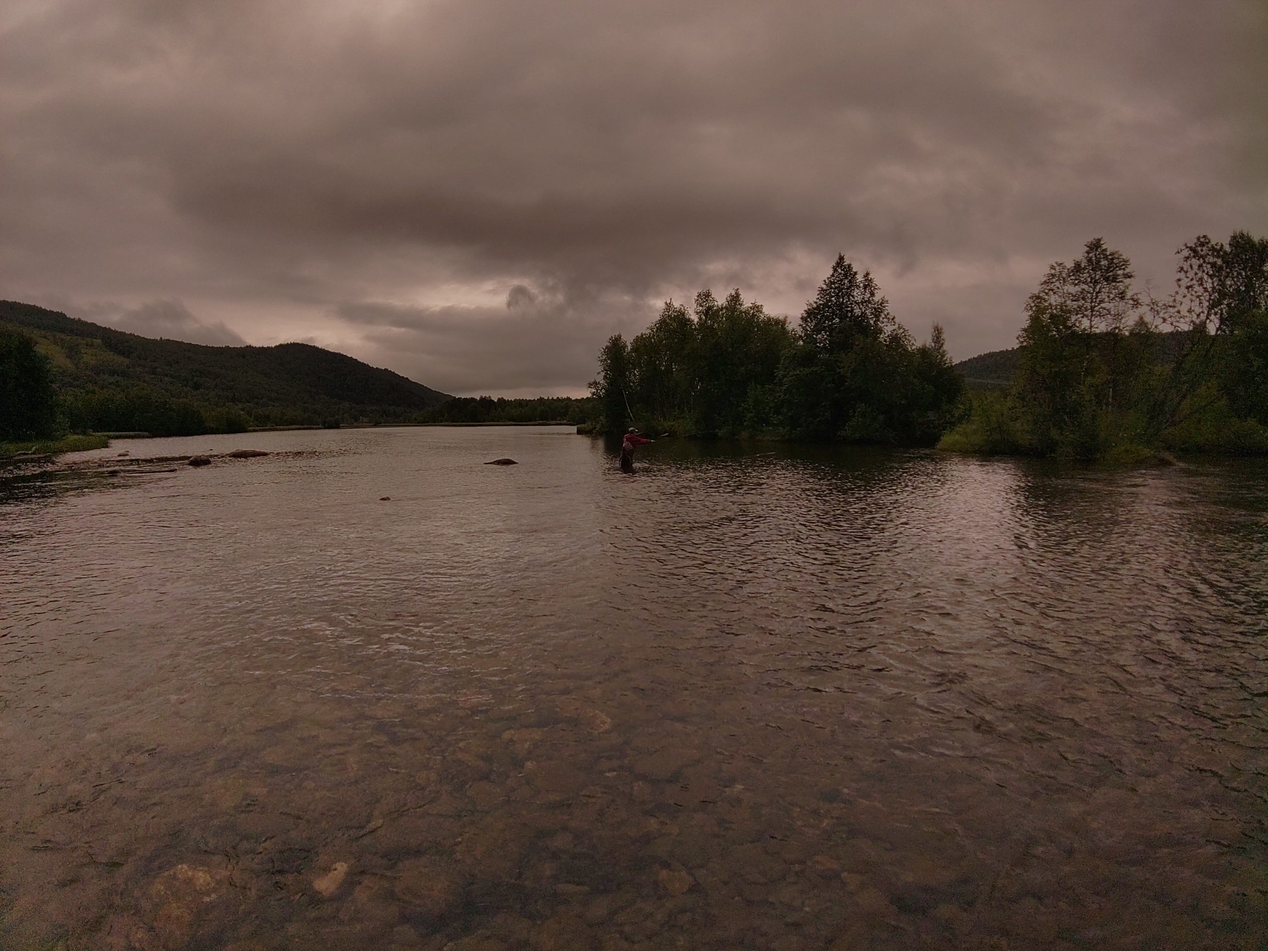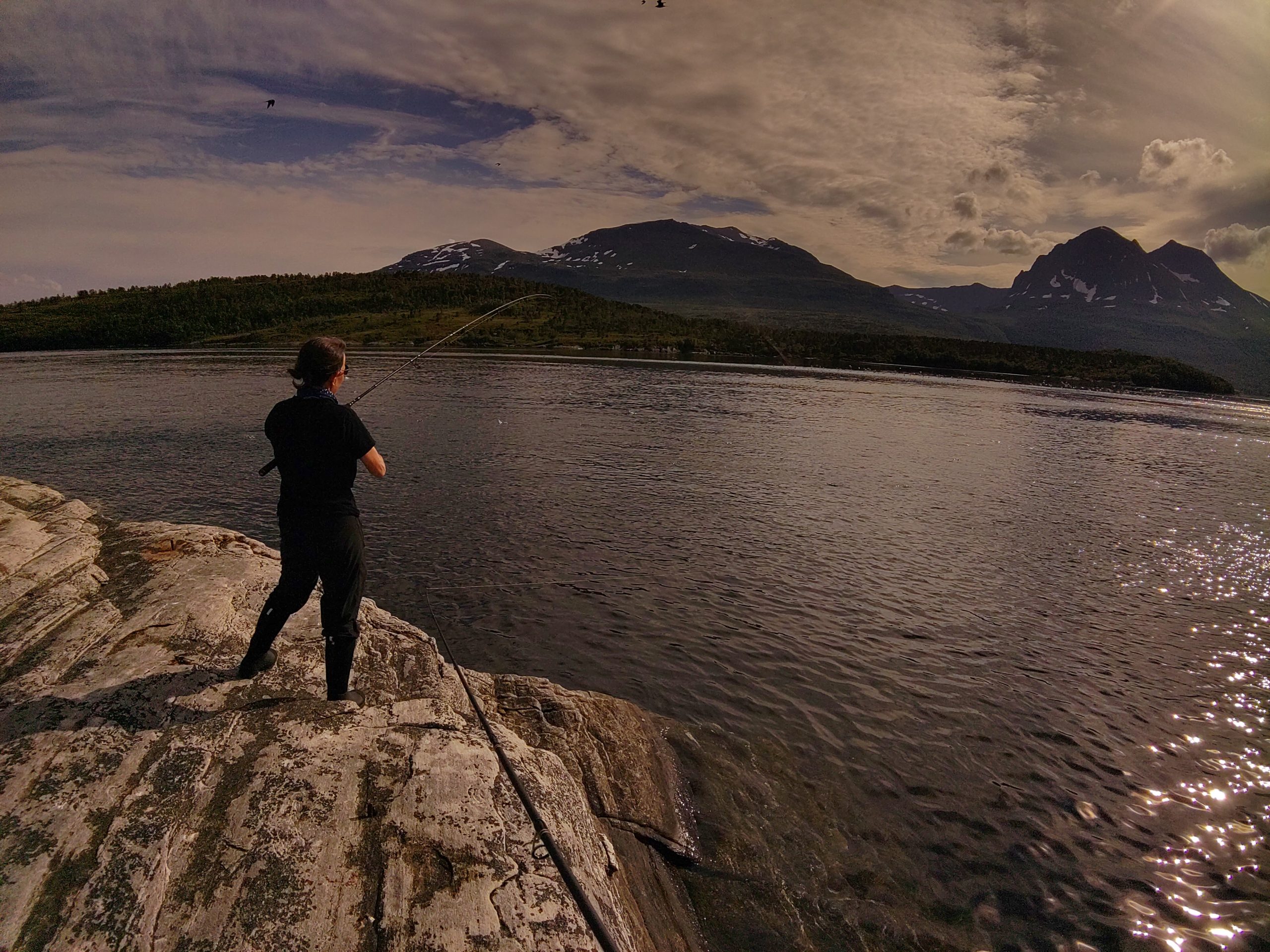 Die Zeit rast jetzt dem Ende entgegen, und wir besuchen ein letztes Mal kurz Fels im Eidsfjord auf Kvaløya, wo wir ein kleines Moltebeerenerntefest feiern, und fahren dann nochmal nach Straumhella, wo wir für zwei Norweger Mädels ca. 20 Sei angeln, weil sie für ein Fest mit sieben Freunden angeln wollten, aber wenig Erfolg hatten. Am Morgen darauf (Montag) angeln wir noch einmal ganz allein an dem schönen Straumen (soll der zweitstärkste Norwegens sein), aber ausser Sei und einem kleinen Dorsch geht nix mehr auf unsere Köder, und wir riggen unsere Meeresruten ab und fahren nochmal an den Barduelva, wo wir tatsächlich mit der Fliege Forellen fangen! 😍 Schon ein sehr spezielles Erlebnis, mit der Fliegenrute Fische zu angeln.
