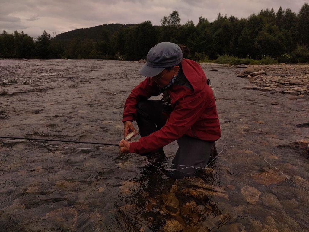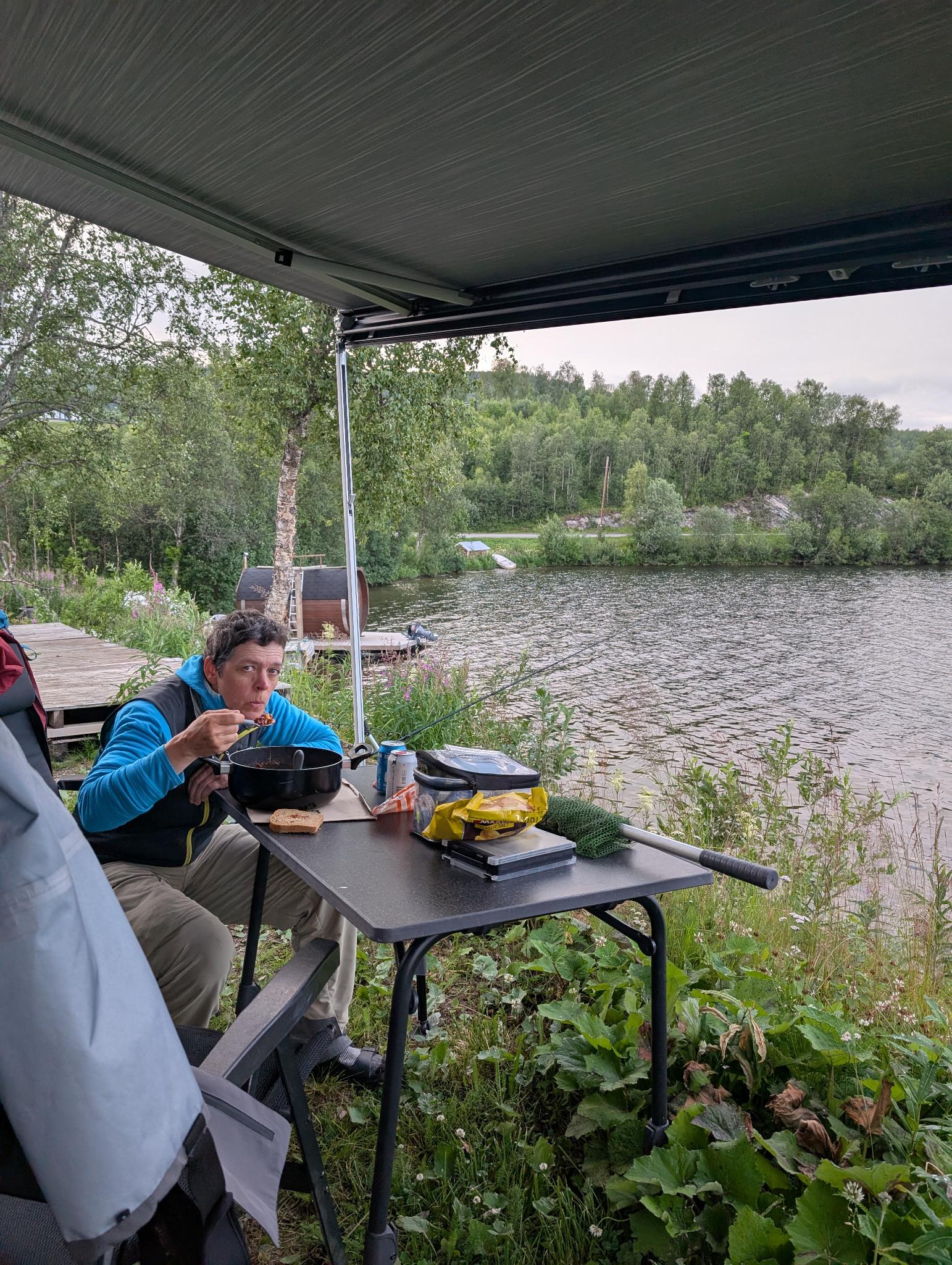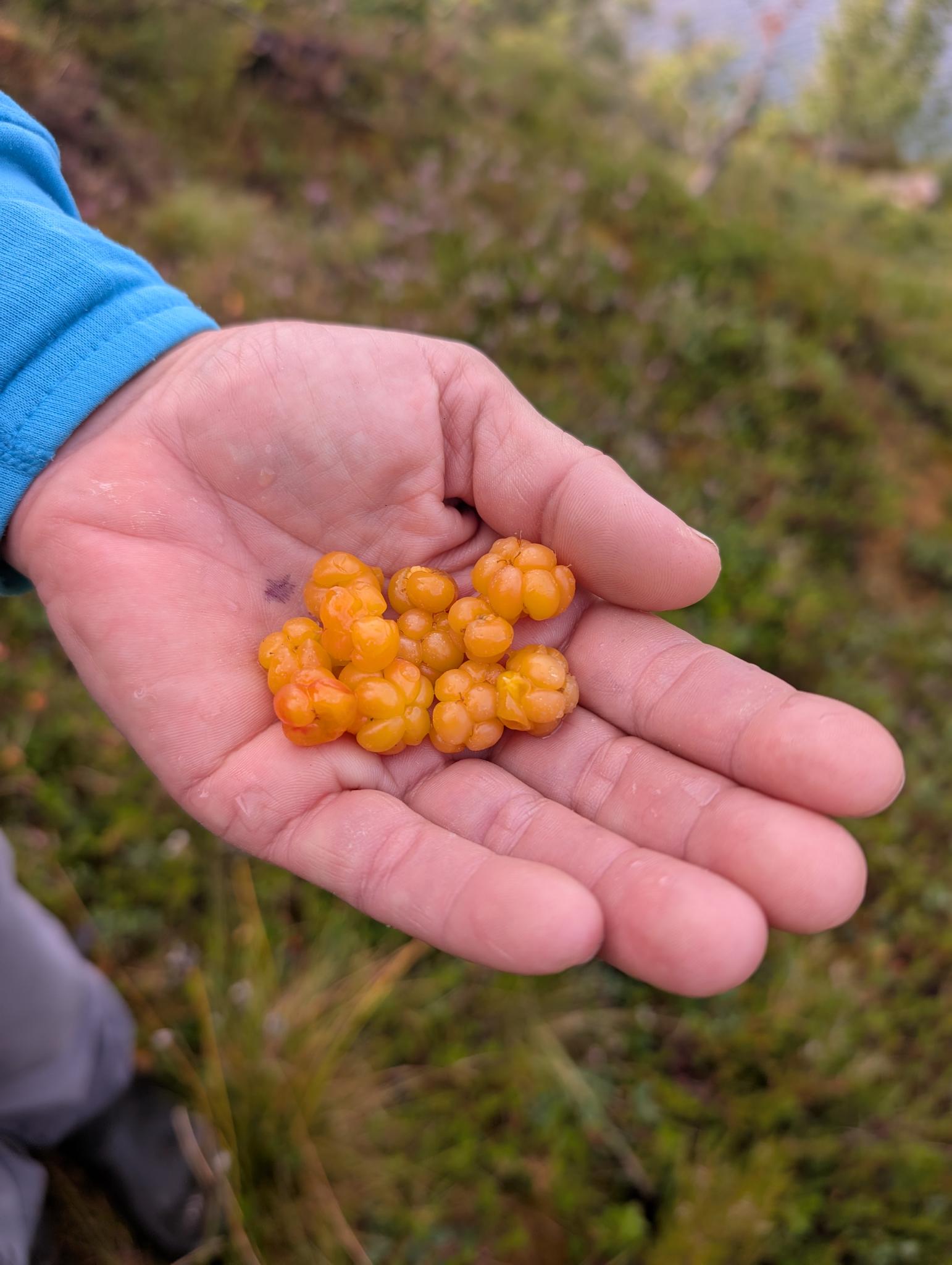 Die Zeit rast jetzt dem Ende entgegen, und wir besuchen ein letztes Mal kurz Fels im Eidsfjord auf Kvaløya, wo wir ein kleines Moltebeerenerntefest feiern, und fahren dann nochmal nach Straumhella, wo wir für zwei Norweger Mädels ca. 20 Sei angeln, weil sie für ein Fest mit sieben Freunden angeln wollten, aber wenig Erfolg hatten. Am Morgen darauf (Montag) angeln wir noch einmal ganz allein an dem schönen Straumen (soll der zweitstärkste Norwegens sein), aber ausser Sei und einem kleinen Dorsch geht nix mehr auf unsere Köder, und wir riggen unsere Meeresruten ab und fahren nochmal an den Barduelva, wo wir tatsächlich mit der Fliege Forellen fangen! 😍 Schon ein sehr spezielles Erlebnis, mit der Fliegenrute Fische zu angeln.