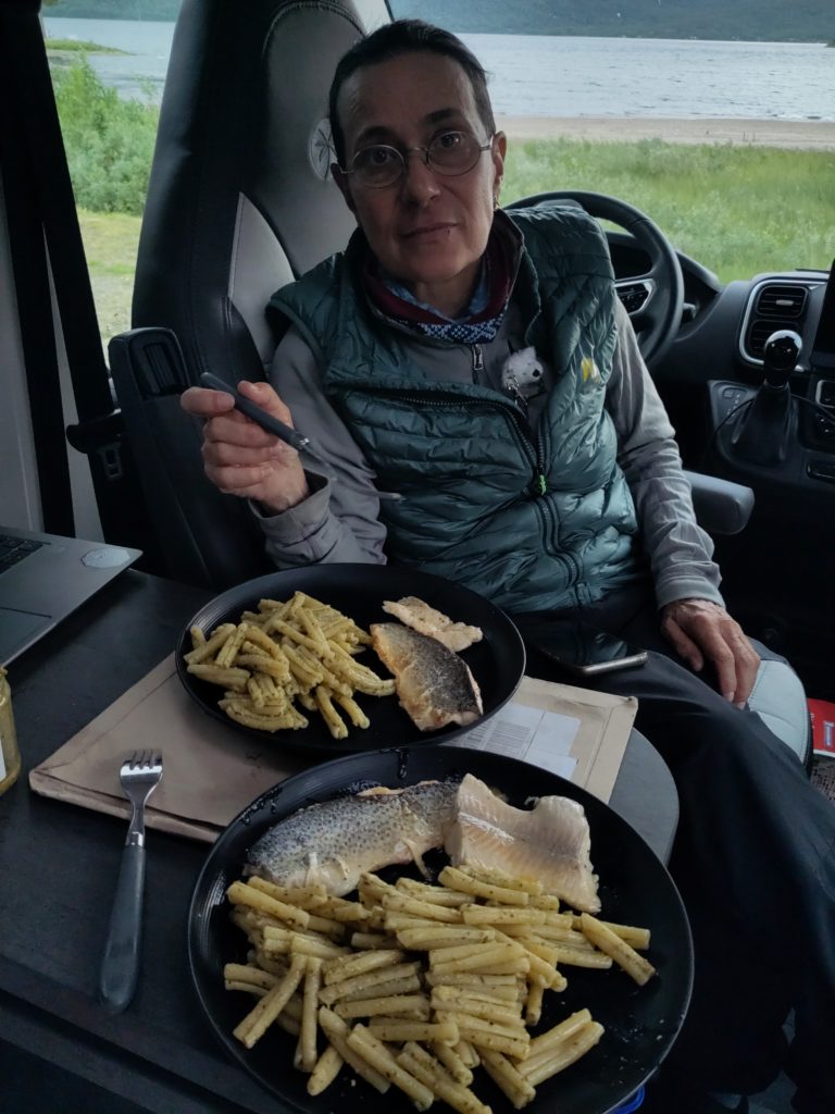 Auf dem Camping freute sich eine 4-köpfige CH-Familie am Hauptteil des Saiblings, und wir genossen die vorzügliche Bachforelle vom Barduelva und ein Saibling-Versucherli (LECKER!).